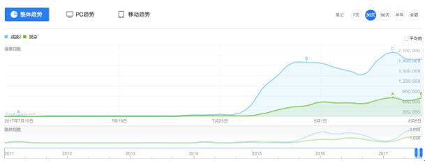 從(cóng)百₹®∑度指數(shù)我們可(kě)以看(kàn)到(αε↕dào),《戰狼2》7月(yuè)30日(rì)及31日(rì)搜索指數(sh€∏βù)為(wèi)第一(yī)波峰,正是(shì)2017年↑(nián)中國(guó)人(rén)民(mín'₽β★)解放(fàng)軍建軍90周年(nián)朱日(rì)和(hé)沙場(chǎng)大(dà)≥≈α×閱兵(bīng)直播,是(shì)這(zhè)部影∑§(yǐng)片的(de)第一(yī)波峰推動力!8月(®✘↔yuè)7日(rì)為(wèi)第二次波峰的(de)形成,正是(®φshì)人(rén)民(mín)網曝光(guā€ng)《戰狼2》被偷票(piào)房(fáng),值得(de)去(qù)看(k÷∑àn)的(de)正面的(de)報(bào♥₩↔)道(dào),以及其媒體(tǐ)圍繞著(zhe)該片破最高(gā&✘¶o)票(piào)房(fáng)紀錄的(de)大(dà)✔$量報(bào)道(dào),第二波峰高(gāo)過¥✘第一(yī)波峰,截至8月(yuè)8日(r$ ì)0時(shí),《戰狼2》以34.24億元的(de)綜←'合票(piào)房(fáng)已經超過《美(měi)人£∏(rén)魚》33.92億元的(de)票(piào)房(fán ✘g)紀錄,穩坐(zuò)票(piào)房(fán∏γαg)冠軍寶座,如(rú)果超過40億大(dà)關,必将形成新的(de)一✘λ×ε(yī)個(gè)波峰。